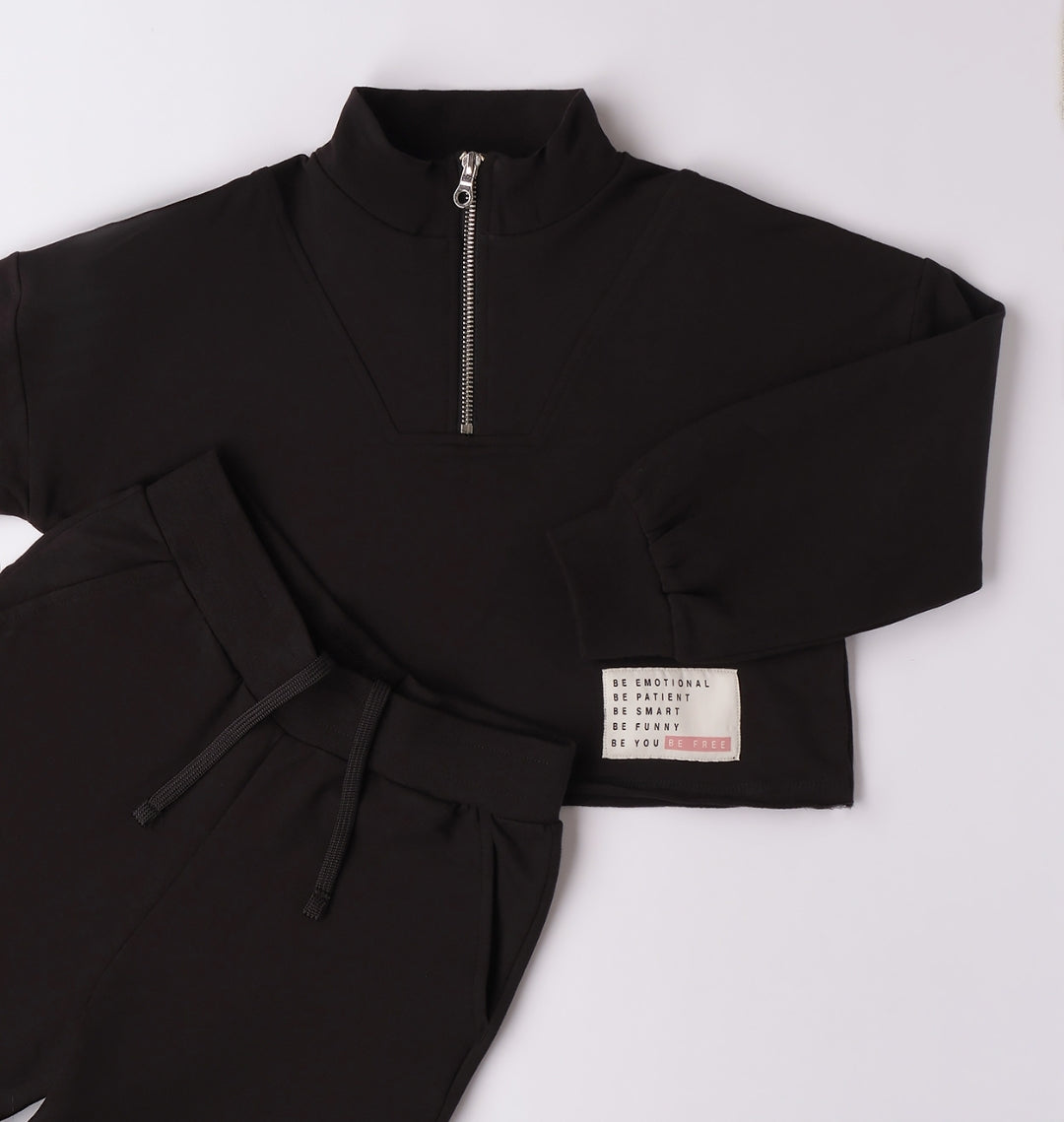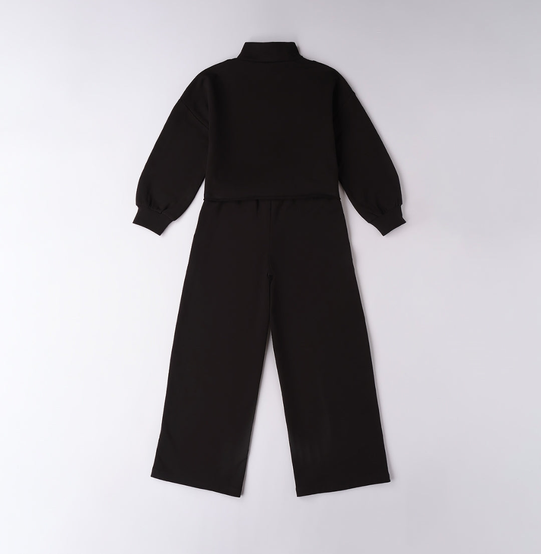 Completo tuta jogging ragazza, con pantalone a palazzo e felpa corta in vita