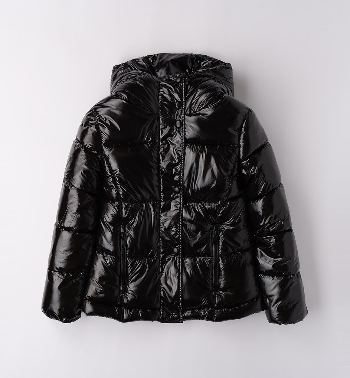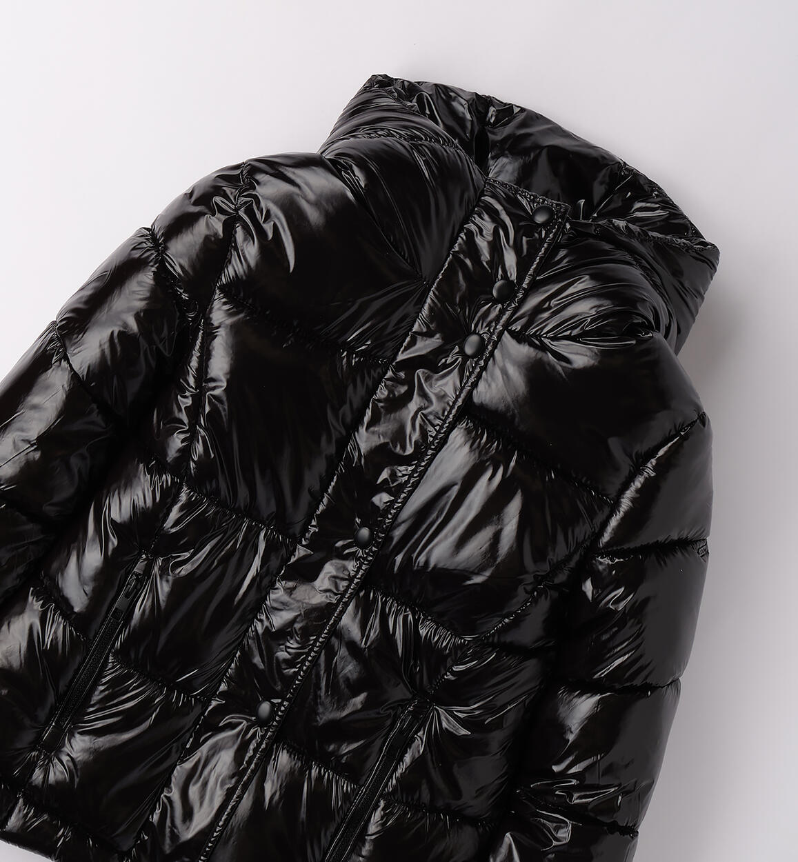 Giubbotto per ragazza realizzato in nylon shining con corpo foderato in caldo e morbido tessuto. Imbottitura in ovatta. Modello con cappuccio. Apertura con zip e bottoni. Zero piuma: 100% senza piuma d'oca. Zero freddo: protegge dall'acqua, dal freddo e dal vento. Zero stress: cura e manutenzione semplice
