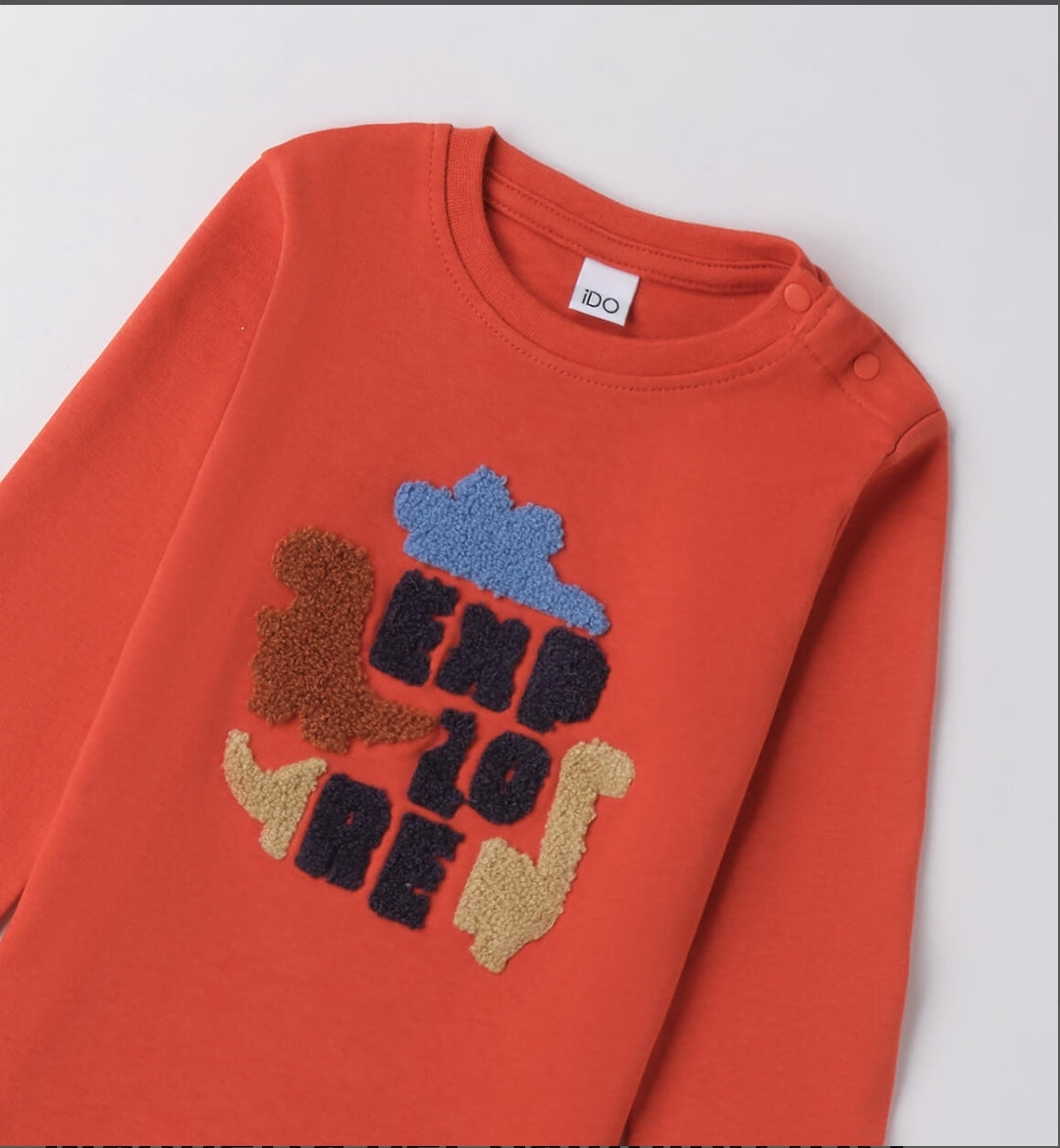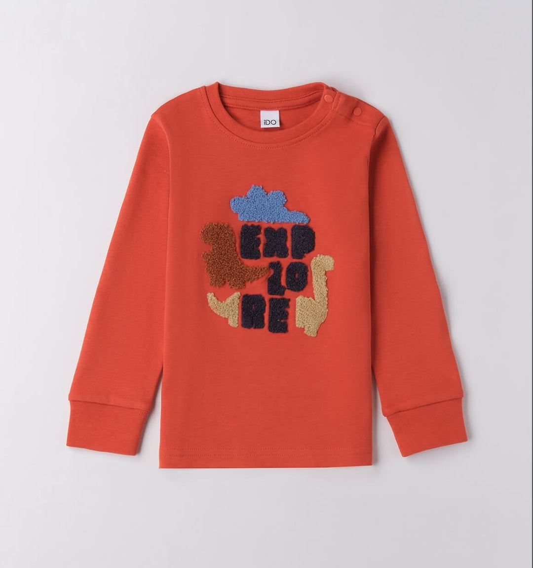 Maglietta per bambino iDO 3 Anni- 8 anni realizzata in interlock 100% cotone. Il modello presenta, alla taglia 3 anni, apertura sulla spalla con bottoni a pressione per agevolare il cambio e la vestizione. Ricamo spugna.