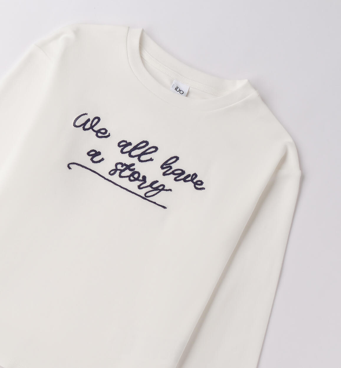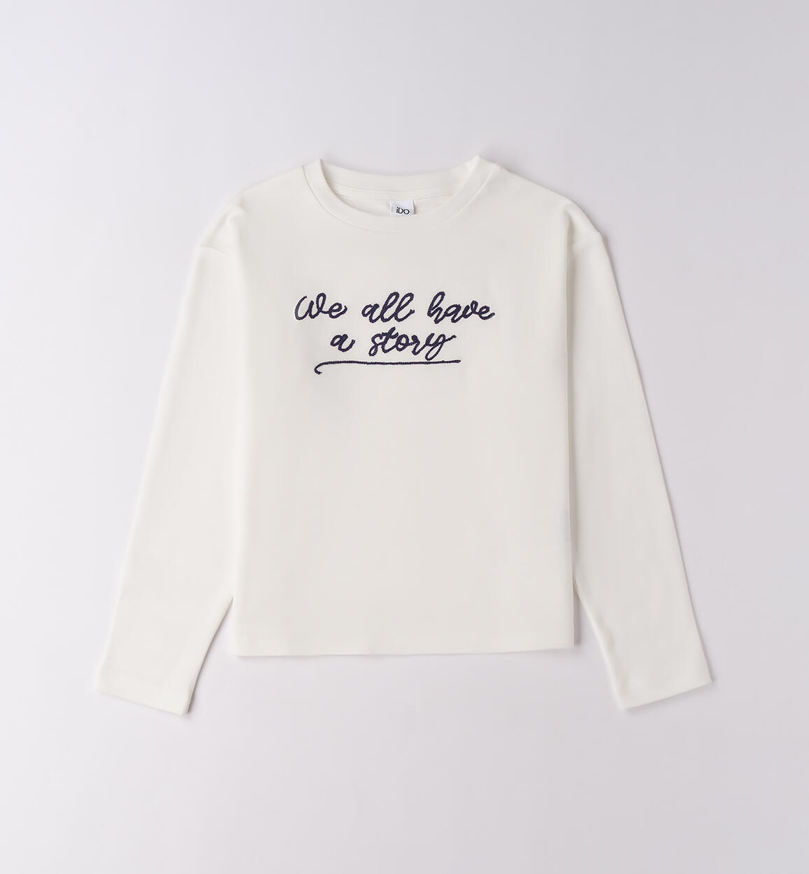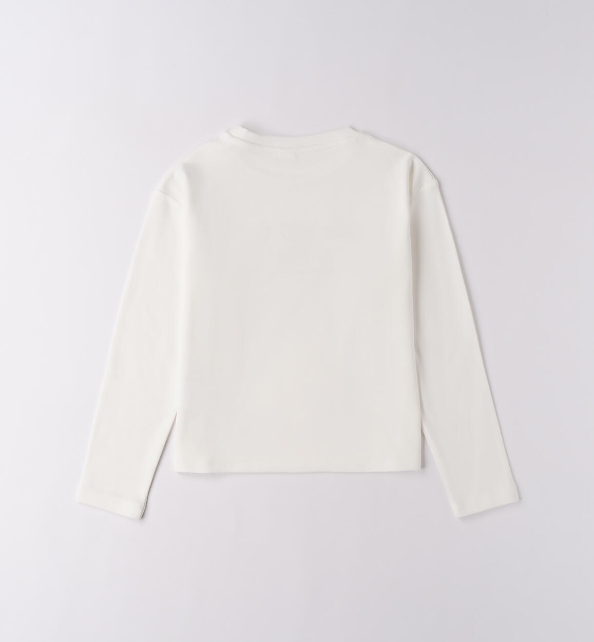 Maglietta per ragazza realizzata in interlock 100% cotone. Il modello è in fantasia tinta unita con ricamo