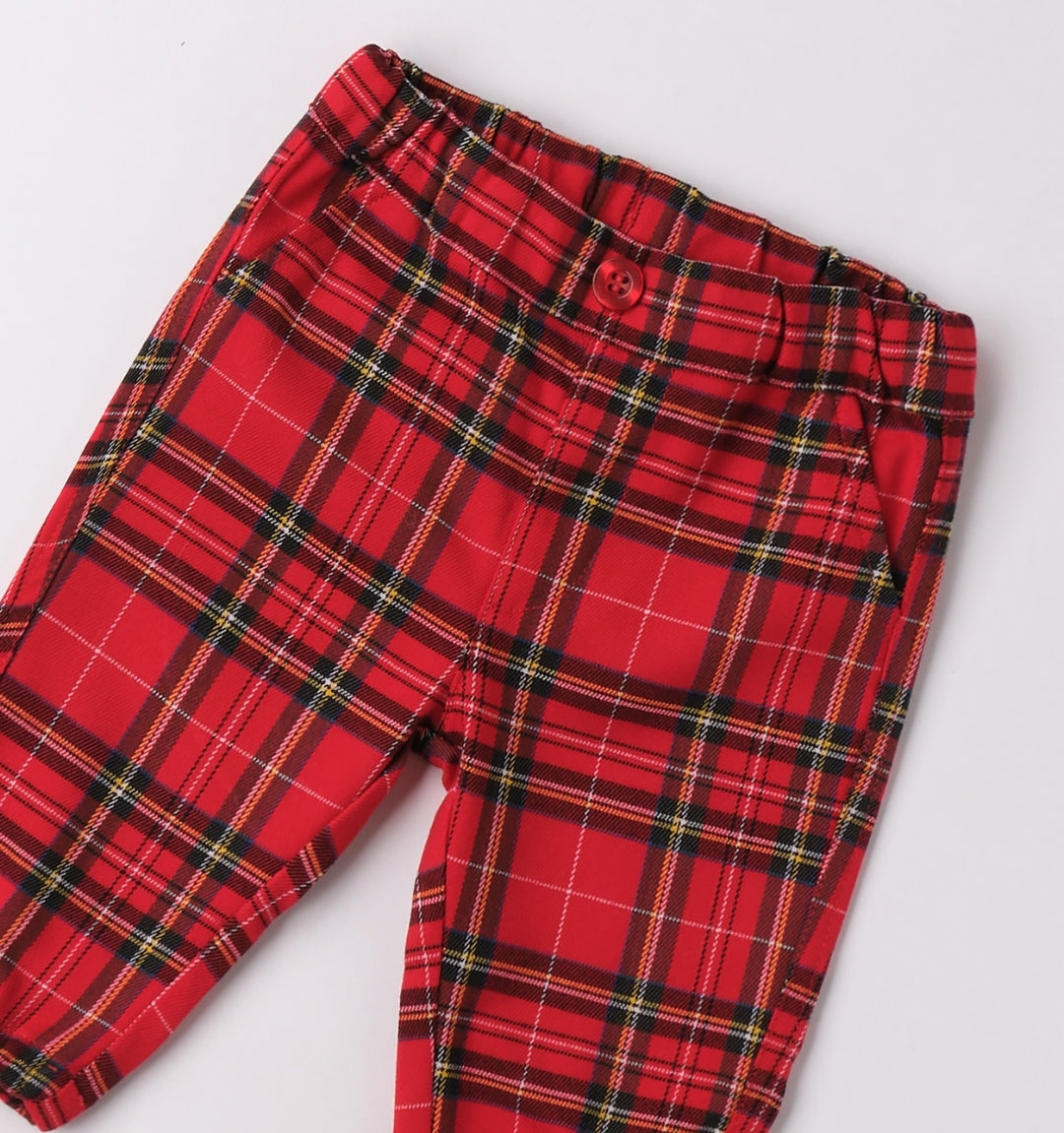 Pantaloni per bimbo iDO 1-24 mesi realizzati in tessuto twill. Il modello ha la vita regolabile tramite elastico asolato interno. Il pantalone è realizzato in fantasia scozzese. Perfetto per essere indossato durante le feste Natalizie
