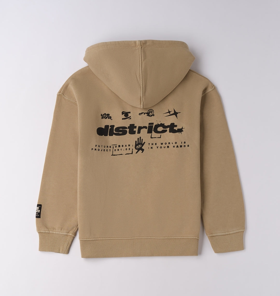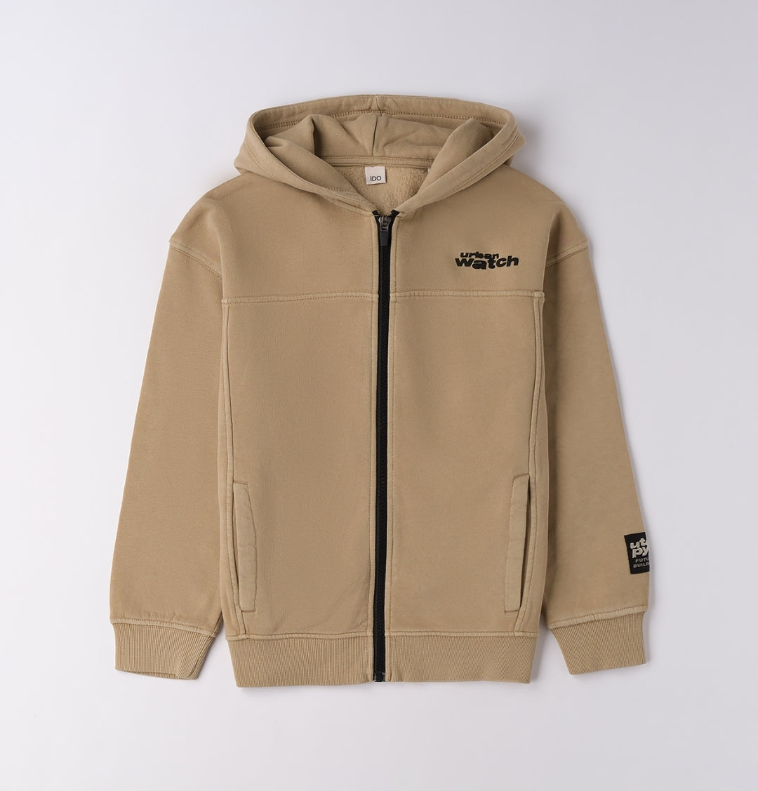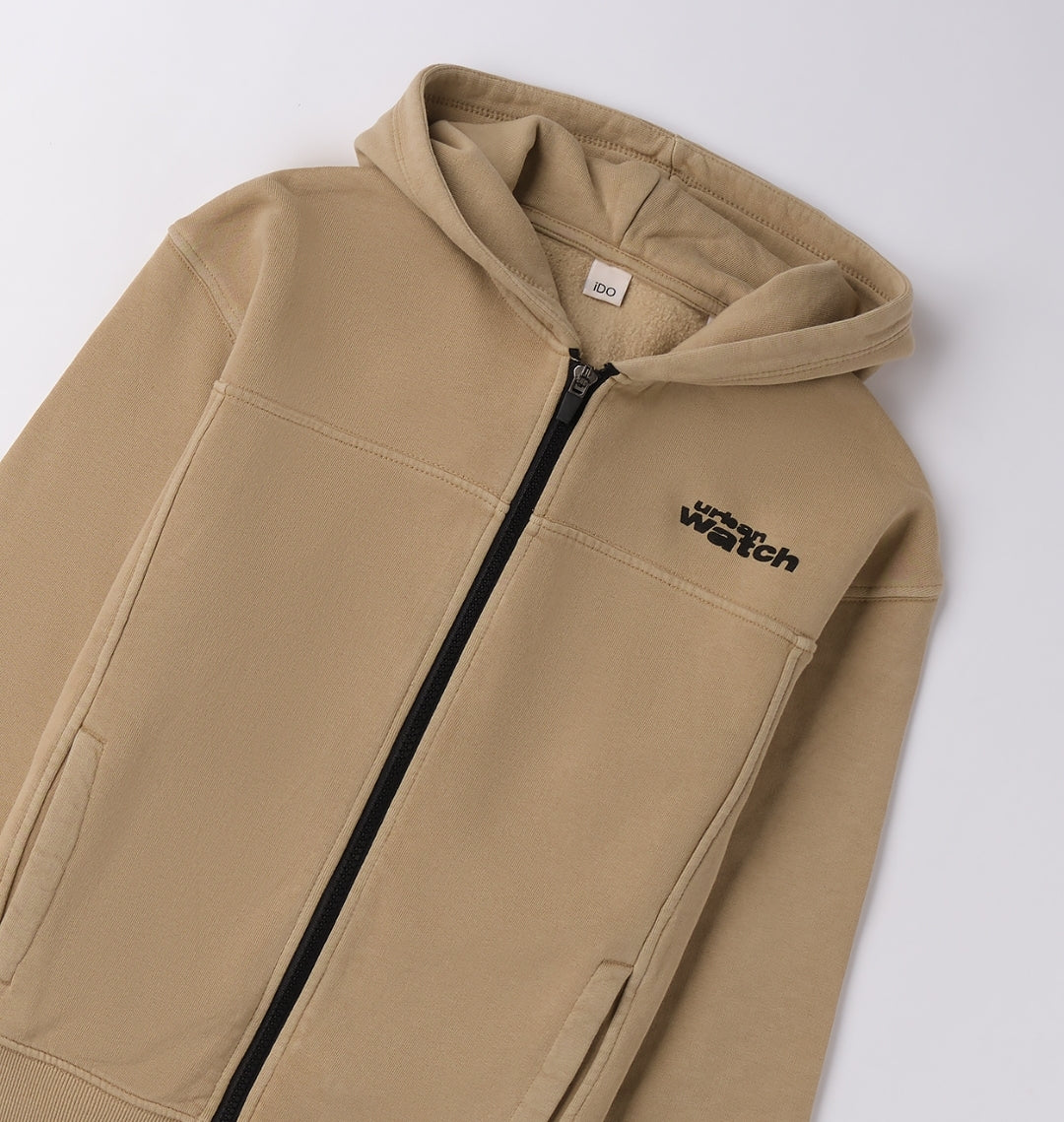 Felpa per ragazzo iDO 10-16 anni realizzata in felpa 100% cotone invernale. Modello con cappuccio, apertura con zip, tasche e stampe. Vestibilità over
