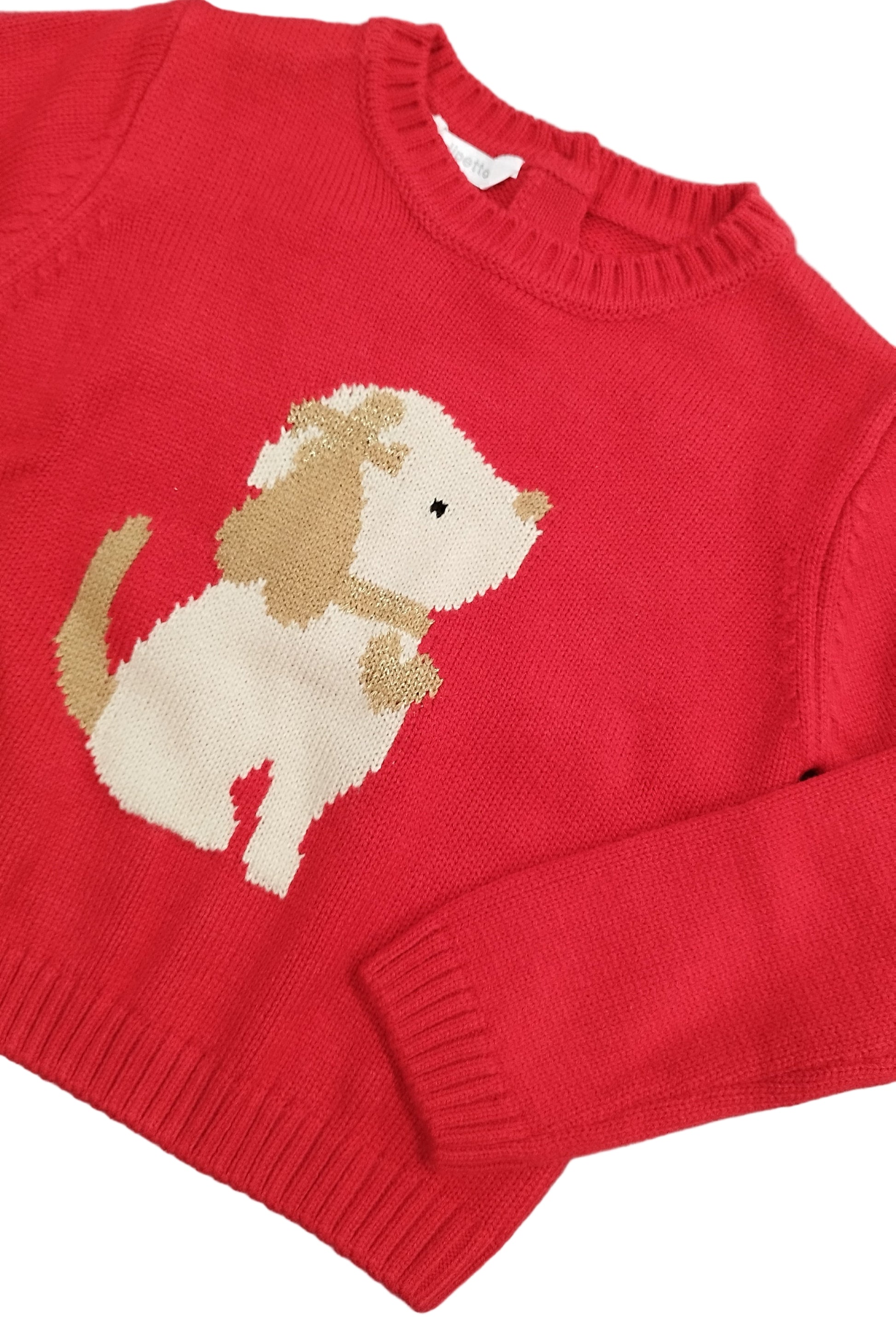 Maglioncino per bambina Dodipetto realizzato in tricot. Il maglione è in tinta unita con ricamo cagnolino frontale.